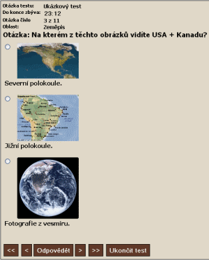 Je nutné vyplnit název otázky a přiřadit mu styl Nadpis 2;Otázka. V tomto typu testu je možné označit jen jednu odpověď. Odpovědi se skládají z obrázků a nepovinných popisků k nim. U správných odpovědí musí být celý odstavec(obrázek i nepovinný text) označen tučným písmem. Student na internetu vybírá jen jednu odpověď. Všechny možné odpovědi v otázce musí být napsány stylem Jedna správná odpověď (ABCD). Obrázky v odpovědích musí být připojeny k dokumentu. K otázce lze libovolně přiložit obrázek. Ten musí mít formát GIF nebo JPG a musí být připojen k dokumentu s testem. |