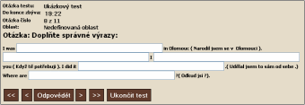 Obecné informace o testu jsou vloženy do: Jednotlivé typy otázek: