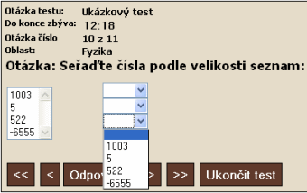 Seřazovačka - podle pořadí - výběr odpovědí ze seznamu |